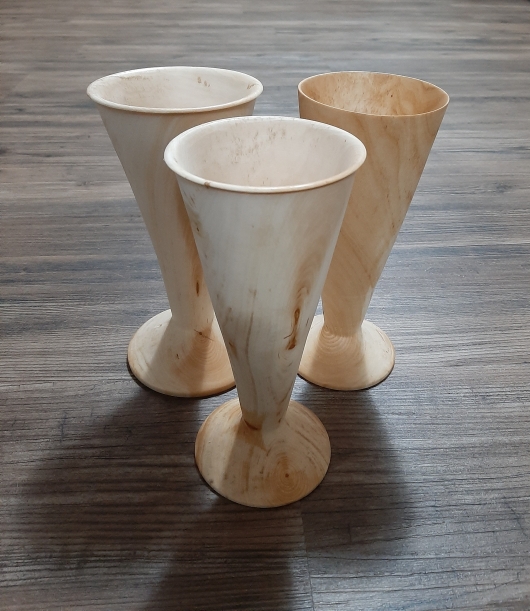 Kozarci so ročno izdelani na stružnici, vsak zase je unikaten; so iz lesa lipe. Premazani so z balzamom za les, ki ima evropski certifikat za stik s hrano. Prednost premaza je, da les ne vpija tekočine, hkrati pa se ga lahko ročno pomiva z vodo in detergentom. Pijača zaradi premaza ne spremeni okusa.