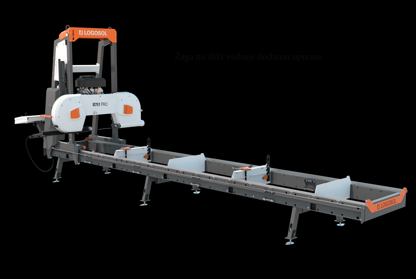 - B751 PRO ležišče in tirnice za hlod narejene po principu žage B1001 - torej robustnejše in pripravljene za namestitev avtomatizacije, mobilnega kompleta in hidravlike.